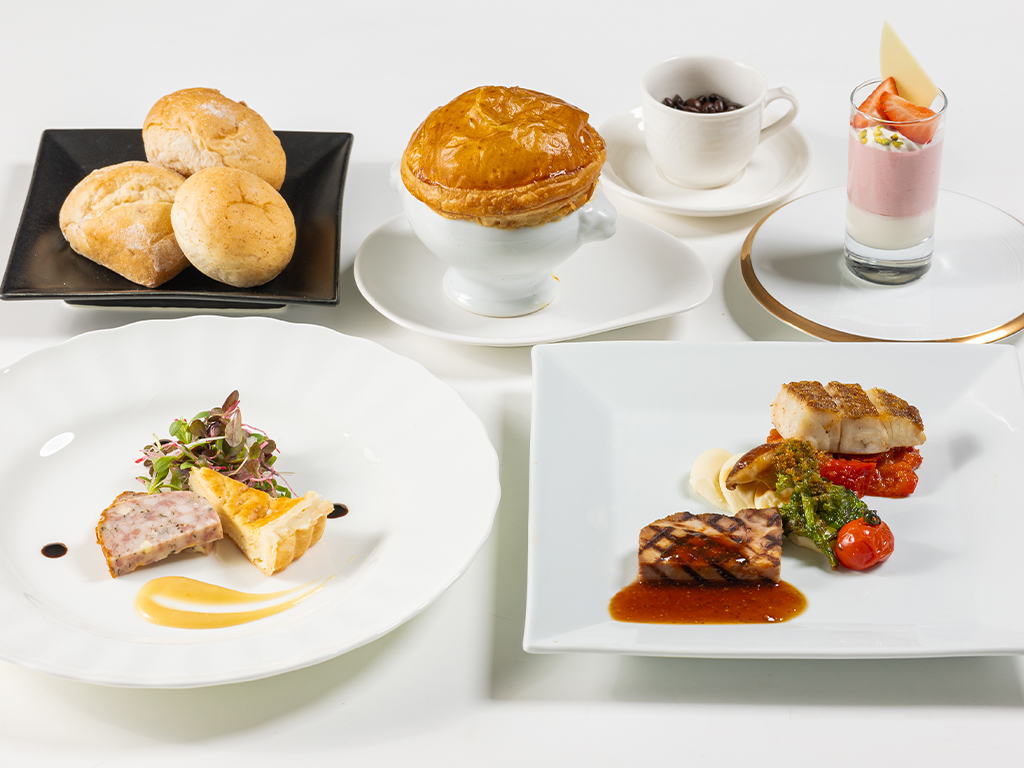 前菜・スープ・メイン料理・デザート・パン・コーヒー