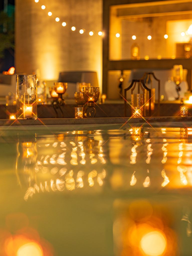 今年のキャンドルナイトは、パーティホールとプール付きのガーデンが、約500個のキャンドルの灯りに包まれ、幻想的な夜を演出。大切な人と温かな時間をお過ごしください。