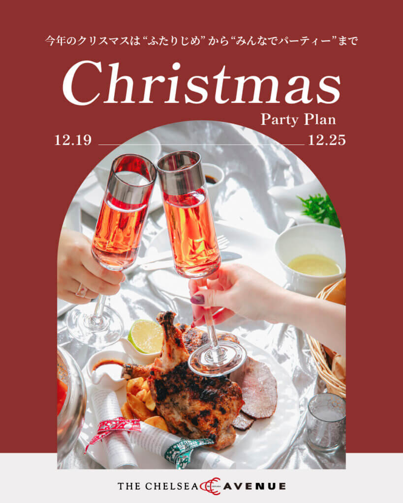ザ・チェルシーアヴェニューでは、12/19~25限定【カップル・家族・友人と愉しむ】X’masプランのご予約を受け付け中です。キャンドルナイトと合わせてお楽しみください。